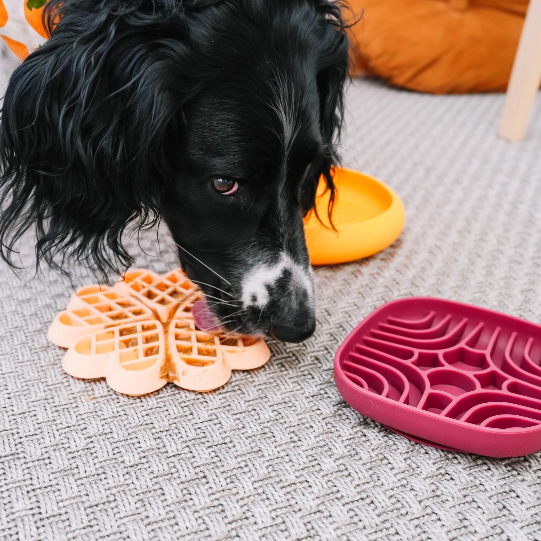 Lizanie to naturalna potrzeba psów – pomaga im się wyciszyć i rozładować napięcie. Dzięki labiryntowemu wzorowi pies musi włożyć więcej wysiłku, by dostać się do przysmaków, co wspiera koncentrację i działa jak ćwiczenie umysłowe.