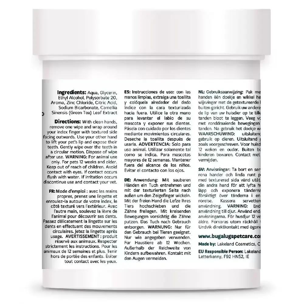 Bugalugs Dental Care Wipes 75 szt. - chusteczki do zębów dla psa i kota, bez szczotkowania