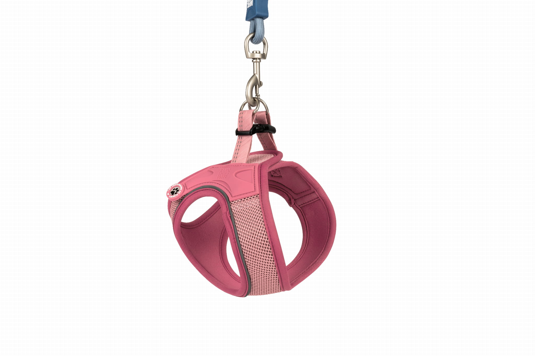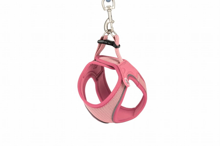 Uprząż wykonano z miękkiej siateczki mesh, która zapewnia stałą cyrkulację powietrza. Wewnętrzna warstwa z neoprenu jest delikatna dla skóry i układa się do ciała, redukując ryzyko otarć. To rozwiązanie idealne na całoroczne spacery, także podczas cieplejszych dni.