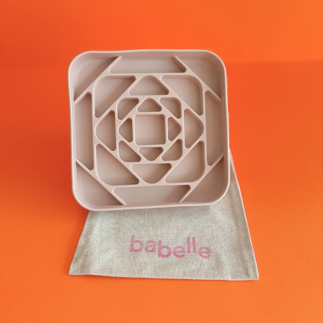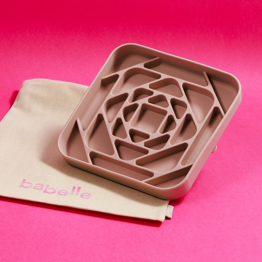 Mata do lizania Babelle The Prism łączy nowoczesny design z praktyczną funkcją spowalniania jedzenia. Geometryczna faktura angażuje psa podczas posiłku, pomaga się wyciszyć i sprzyja spokojniejszemu jedzeniu. Sprawdzi się do karmy, past i mrożonych przysmaków.