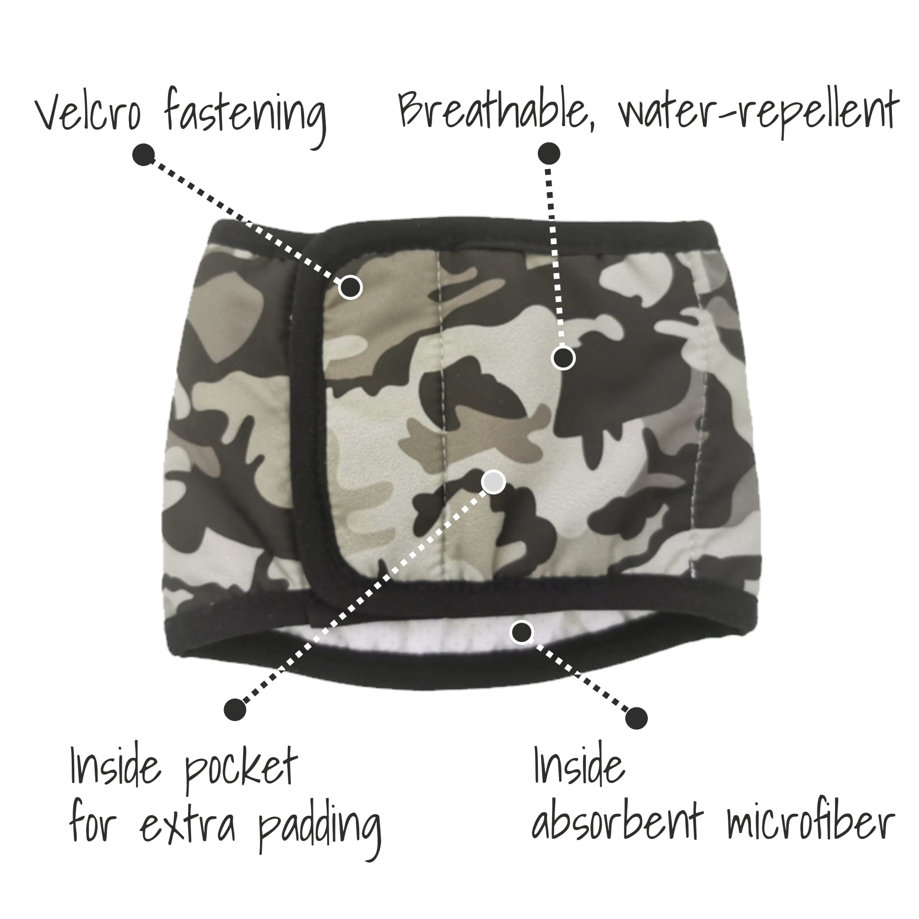 Pas ochronny Finnero JustinCase zabezpiecza meble, podłogi i tkaniny przed zabrudzeniami, jednocześnie zapewniając psu pełną swobodę ruchu. Wykonany z oddychającego, wodoodpornego materiału, posiada chłonną warstwę mikrofibry oraz kieszonkę z siateczki, do której można włożyć wkład chłonny lub ręcznik papierowy.