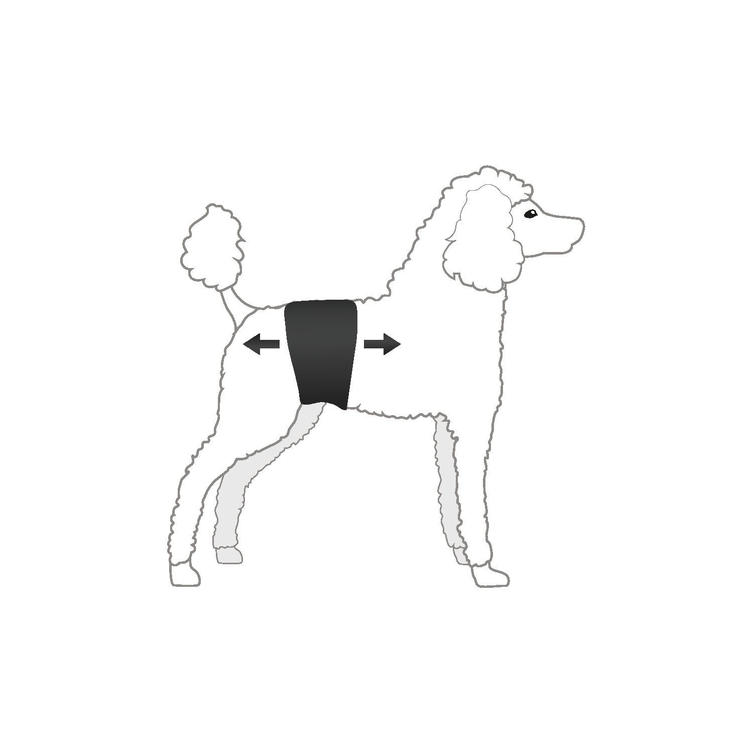 - Owiń pas wokół brzucha psa, tuż za przednimi łapami.
