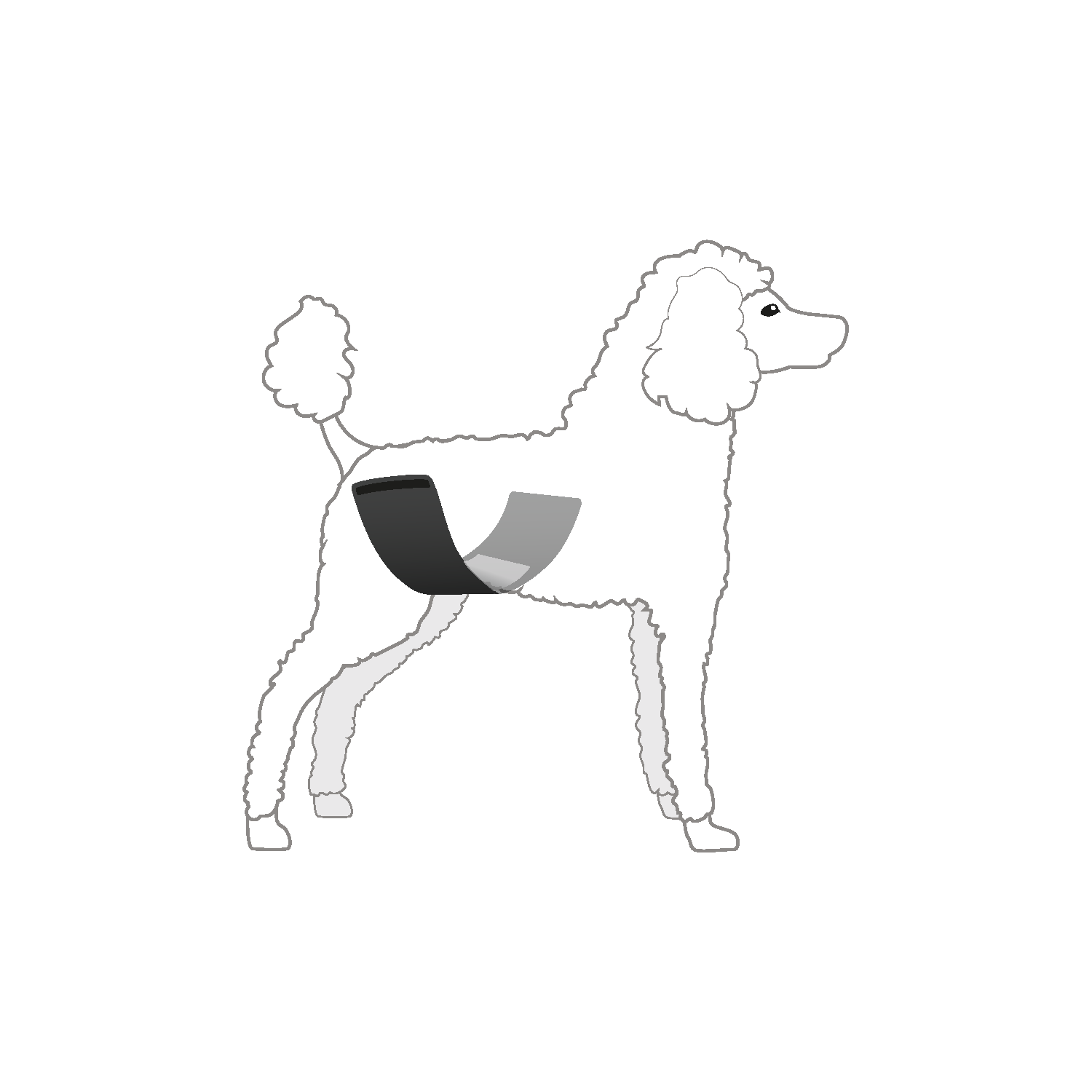 Elastyczna konstrukcja sprawia, że pas delikatnie przylega do ciała psa i nie uciska. Miękkie krawędzie chronią skórę przed otarciami, a mocny rzep pozwala łatwo regulować obwód i szybko zdejmować lub zakładać produkt.