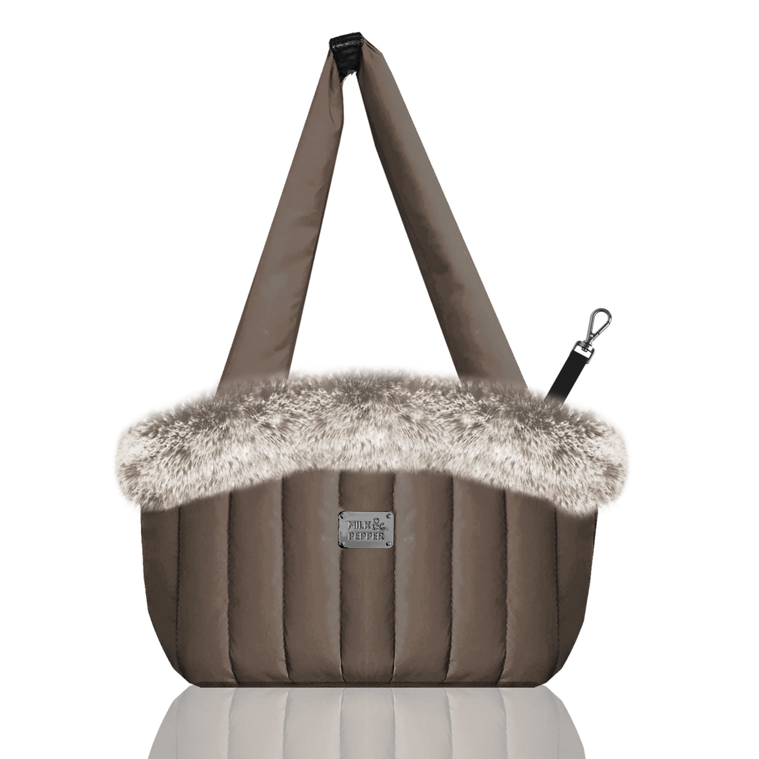 Torba Milk & Pepper Nanouk to stylowe i wygodne rozwiązanie do noszenia małego psa. Pikowany materiał z wodoodpornym wykończeniem, miękkie futerko i praktyczne detale sprawiają, że każda wspólna podróż będzie komfortowa i elegancka.