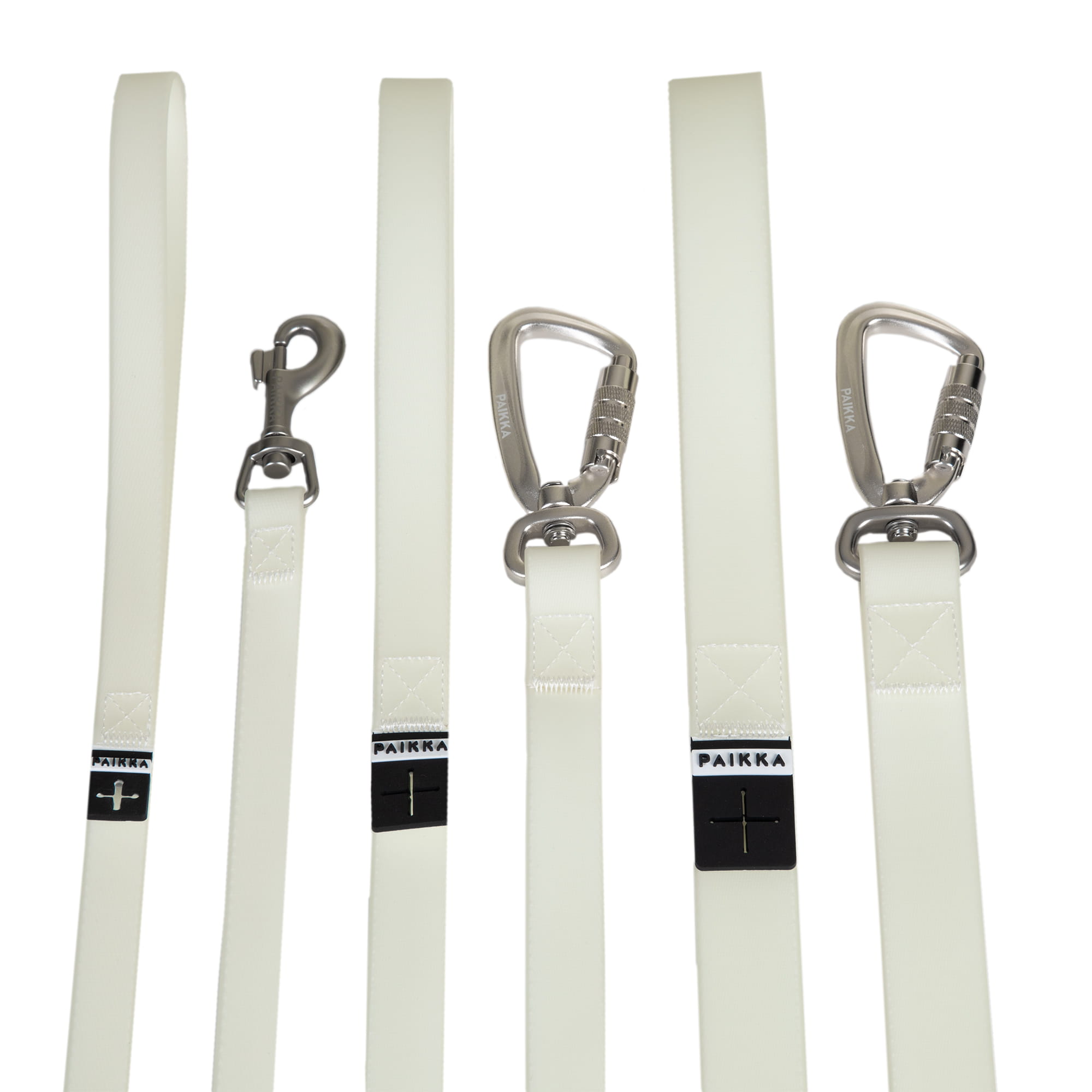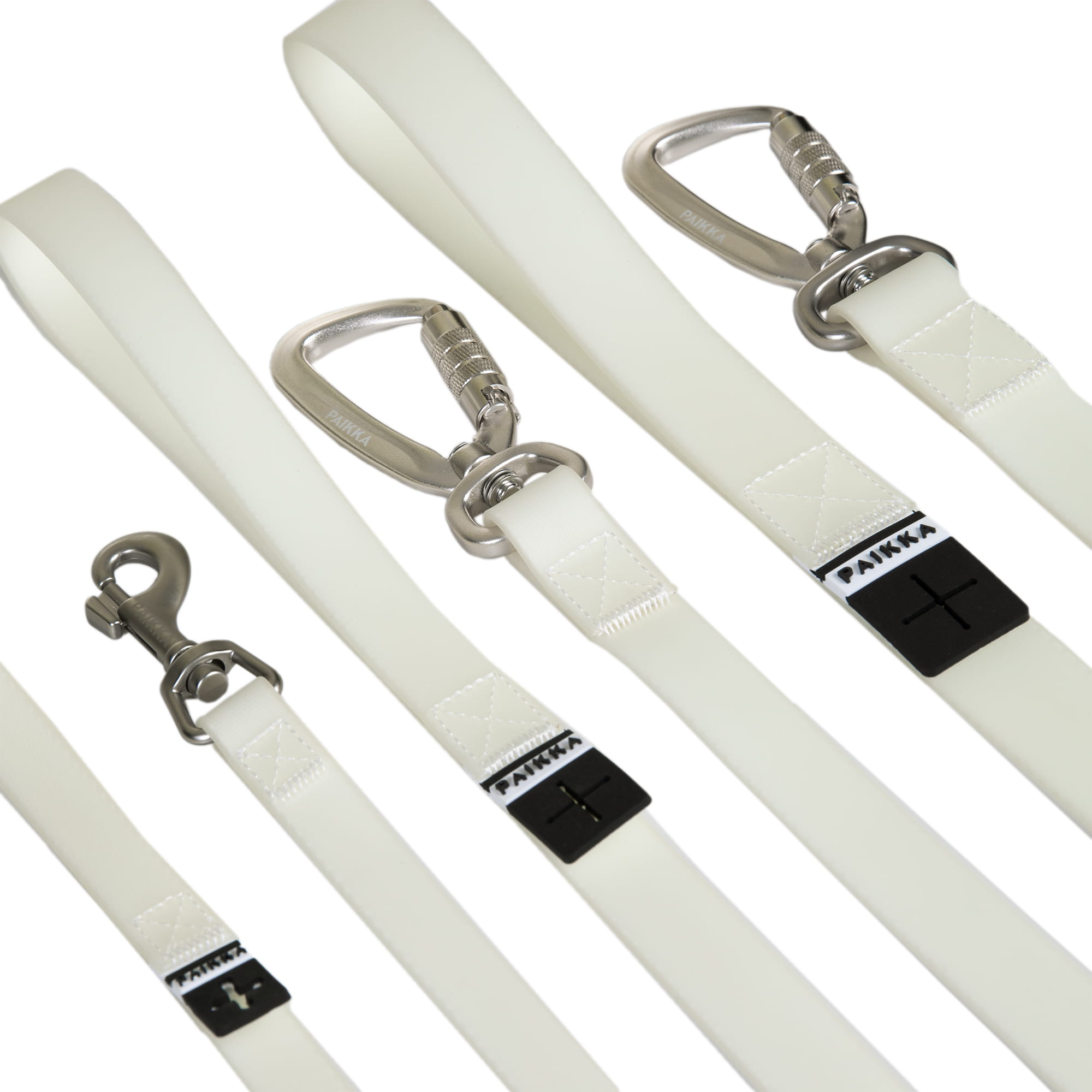 PAIKKA Glow Leash to smycz z fluorescencyjnego materiału, który pochłania światło i świeci w ciemności. Zapewnia doskonałą widoczność po zmroku, łącząc bezpieczeństwo, trwałość i nowoczesny design. Dostępna w trzech rozmiarach.