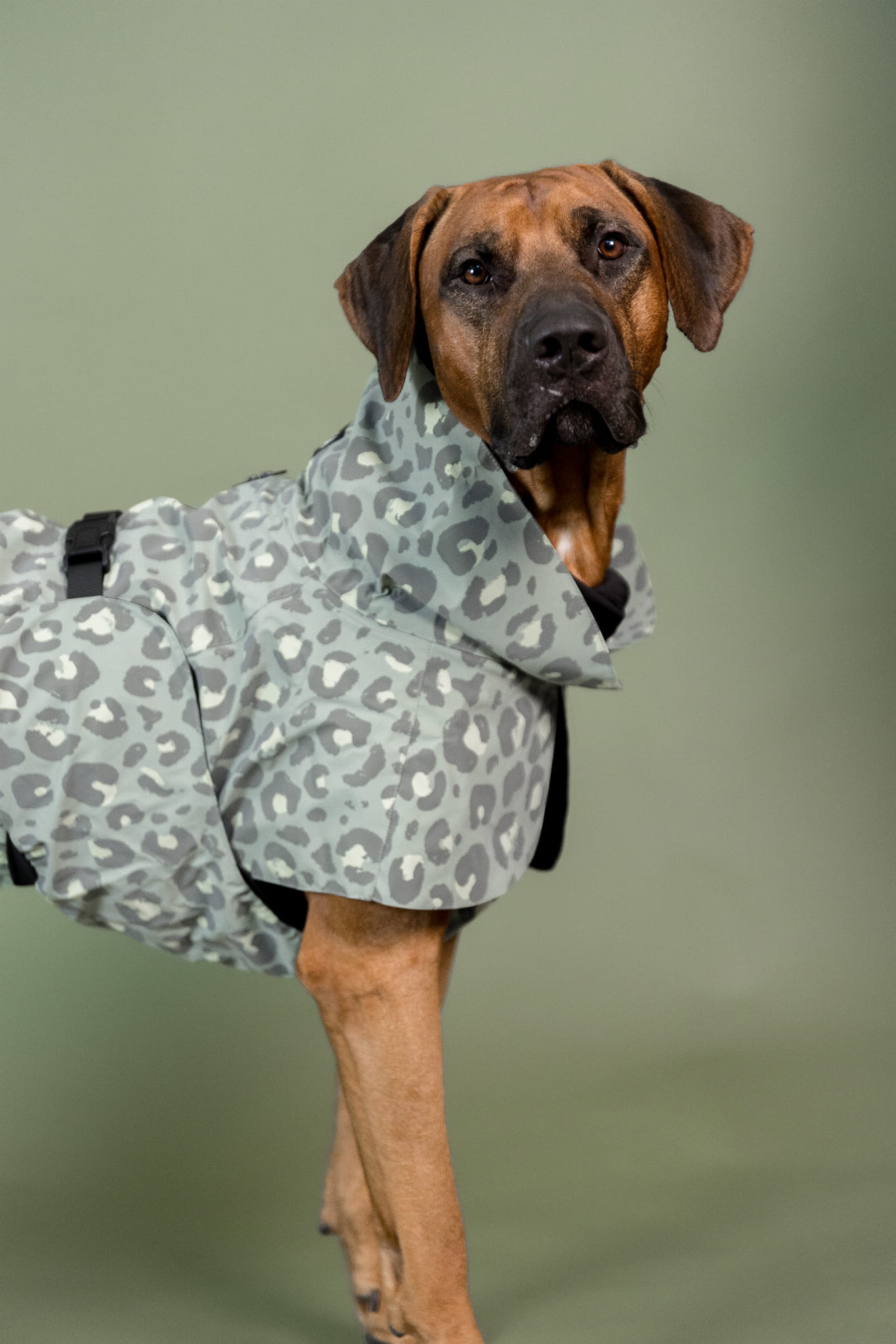 PAIKKA Visibility Winter Jacket Green Leo to zimowa, wodoodporna kurtka dla psa z charakterystycznym tęczowym refleksem. Łączy ocieplenie 3M™ Thinsulate™, podszewkę Far Infrared wspierającą regenerację mięśni i pełną ochronę przed chłodem, śniegiem i wiatrem. Idealna dla psów, które lubią wyróżniać się stylem nawet zimą.