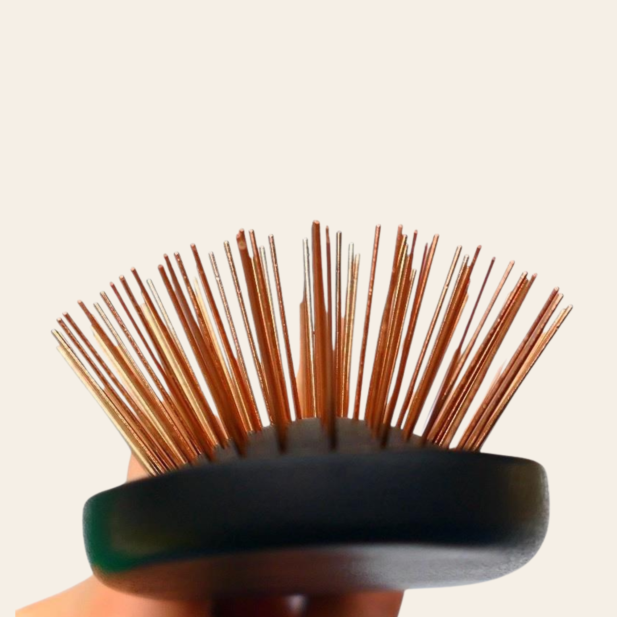Miedź jest znana ze swoich antybakteryjnych i antygrzybicznych właściwości, co oznacza, że szczotka nie tylko pielęgnuje sierść, ale także pomaga utrzymać ją w czystości. Ogranicza rozwój bakterii i drobnoustrojów, dzięki czemu sierść pozostaje świeża na dłużej.